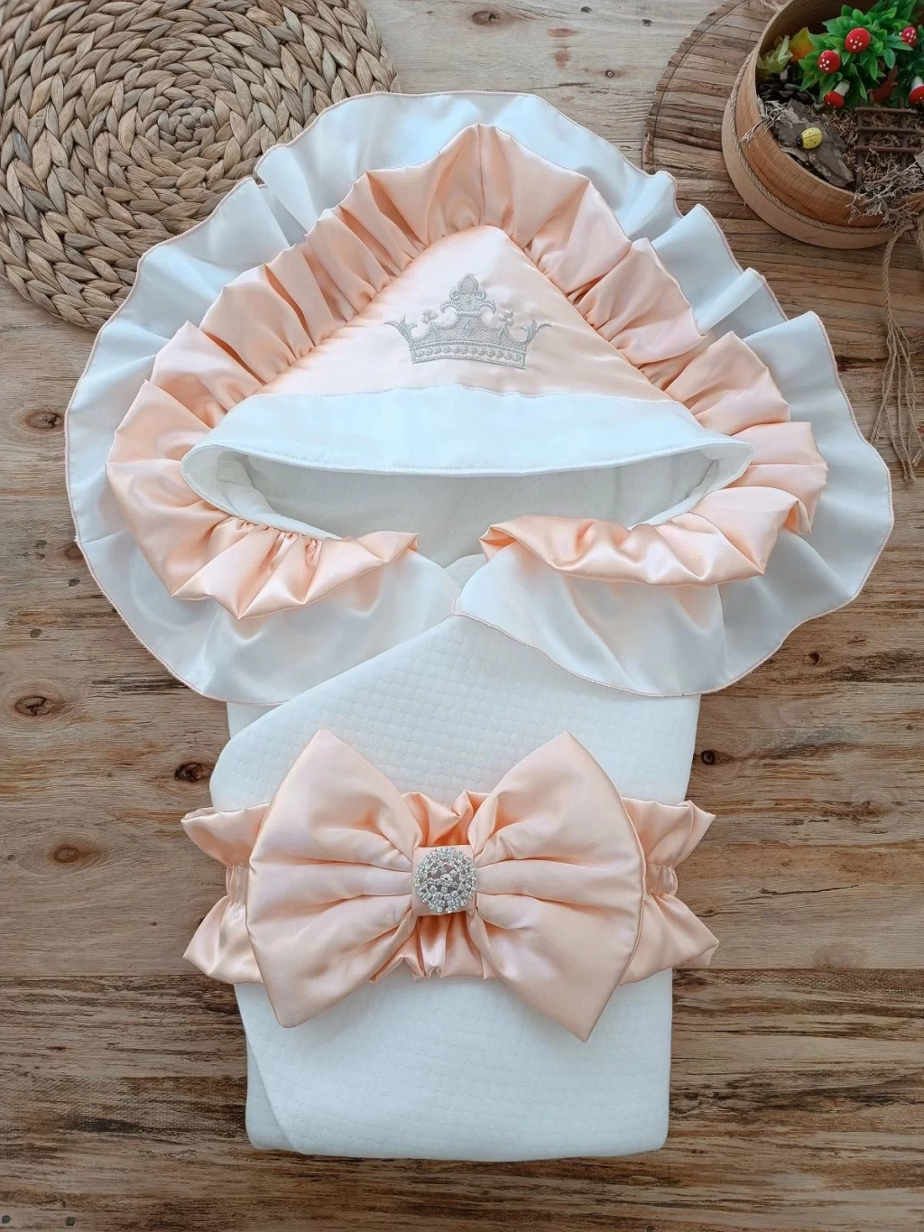 Yenidoğan Mehtap Lüks Kelebek Taç Nakışlı Bebek Battaniyesi Kundak Pudra
