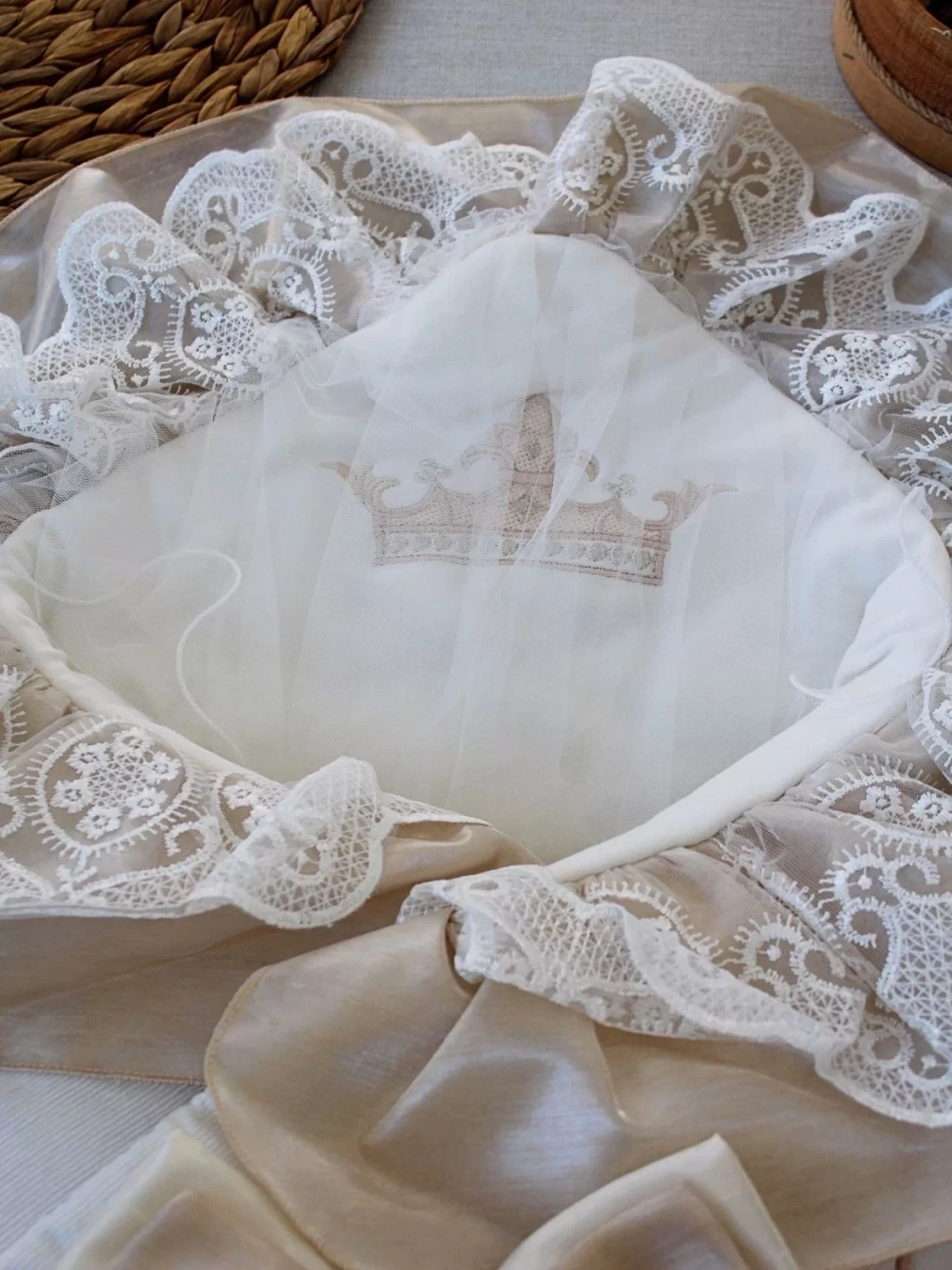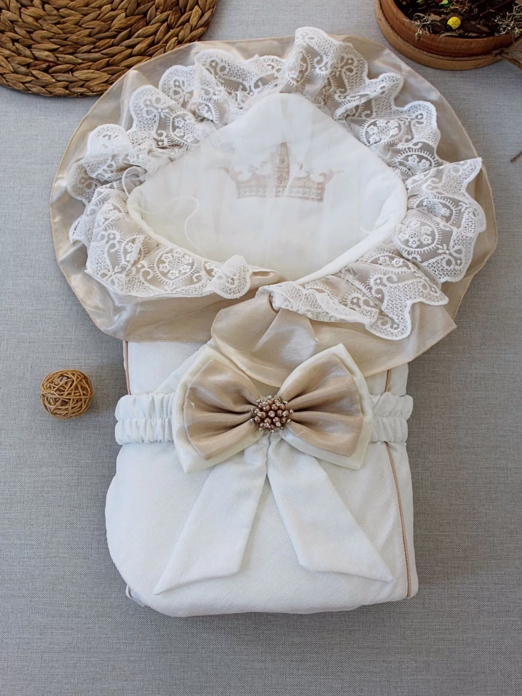 Yenidoğan Nil Taç Nakışlı Kumru Kundak Bebek Battaniyesi Sütlü Kahve