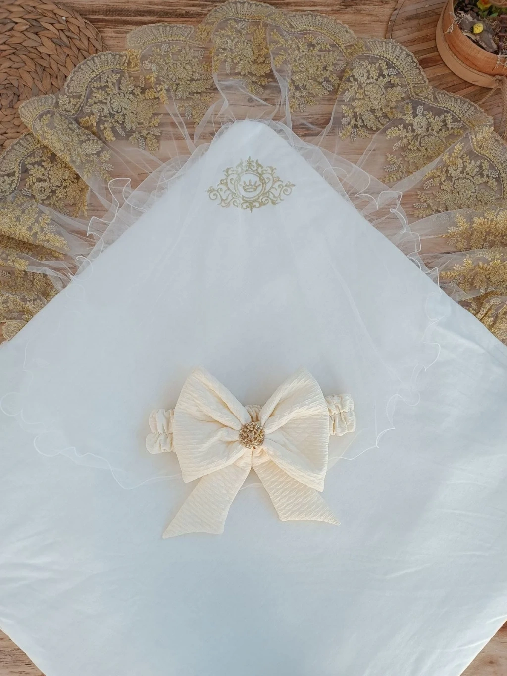 Yenidoğan Piramitland Taşlı Gold Güpür İşleme Bebek Battaniyesi Kundak Ekru