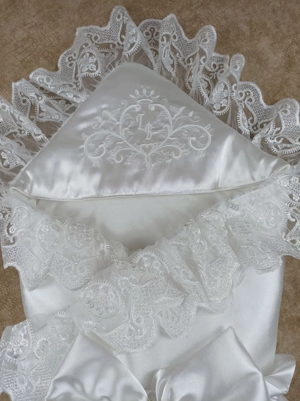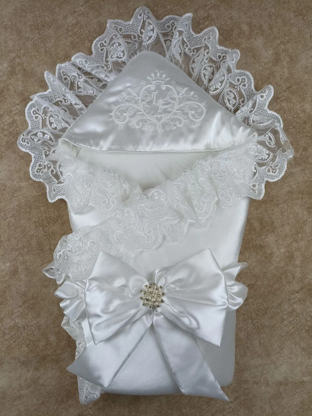 Yenidoğan Pırıltı Nakış Detaylı Lüks Kundak Bebek Battaniyesi Ekru
