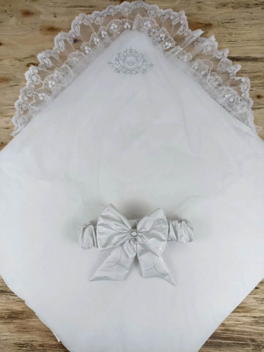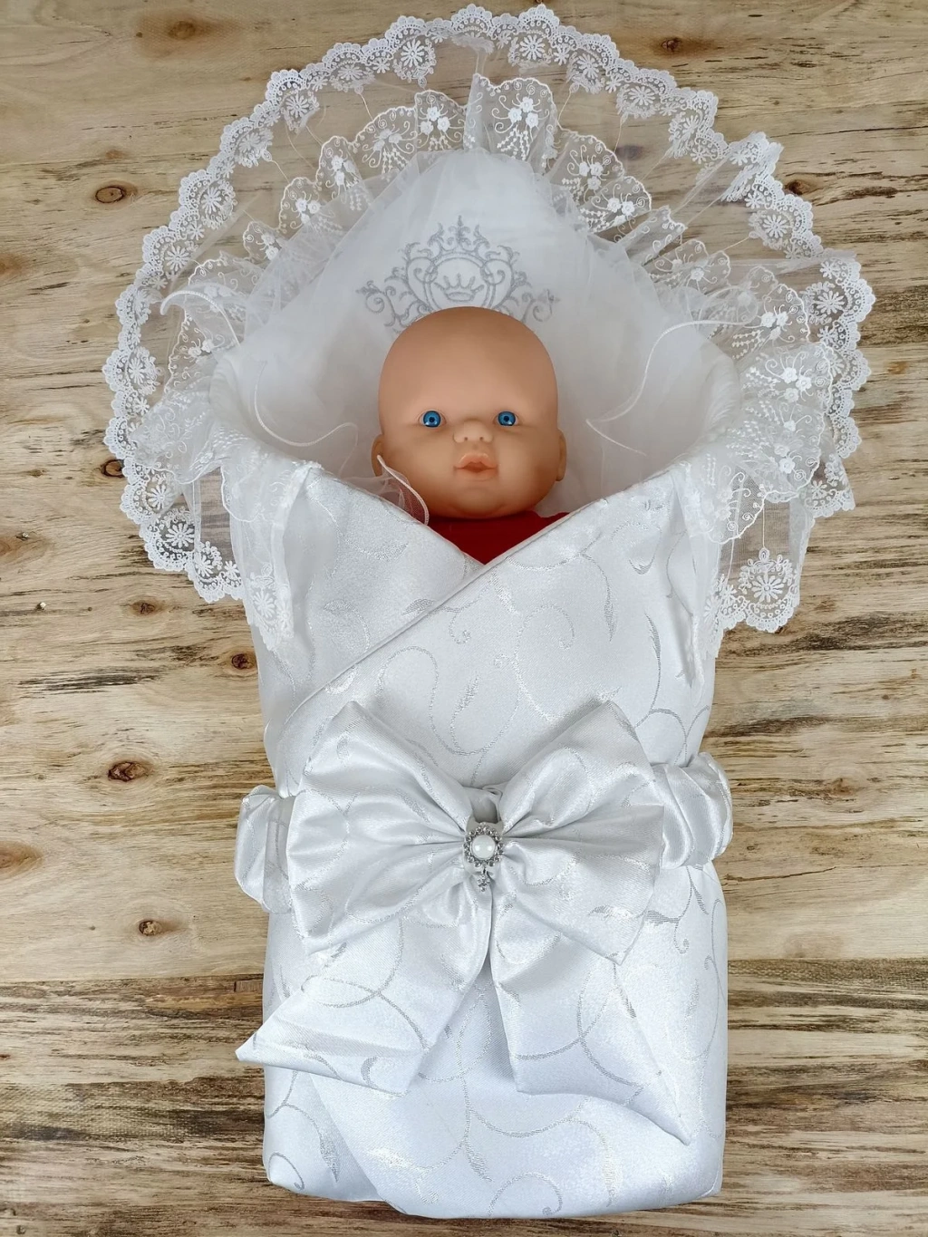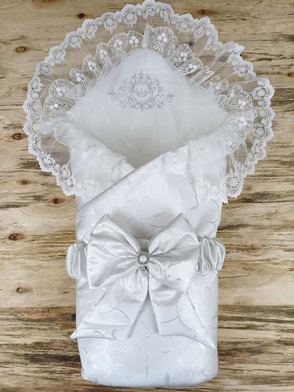 Yenidoğan Pırıltı Taç Nakışlı İnci Delüks Kundak Bebek Battaniyesi Ekru