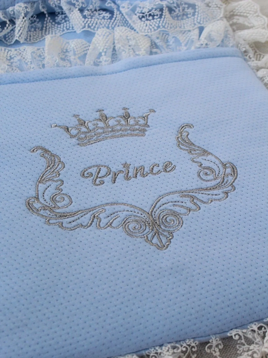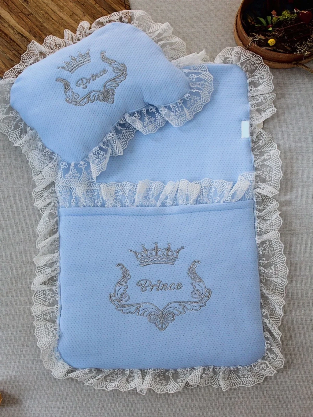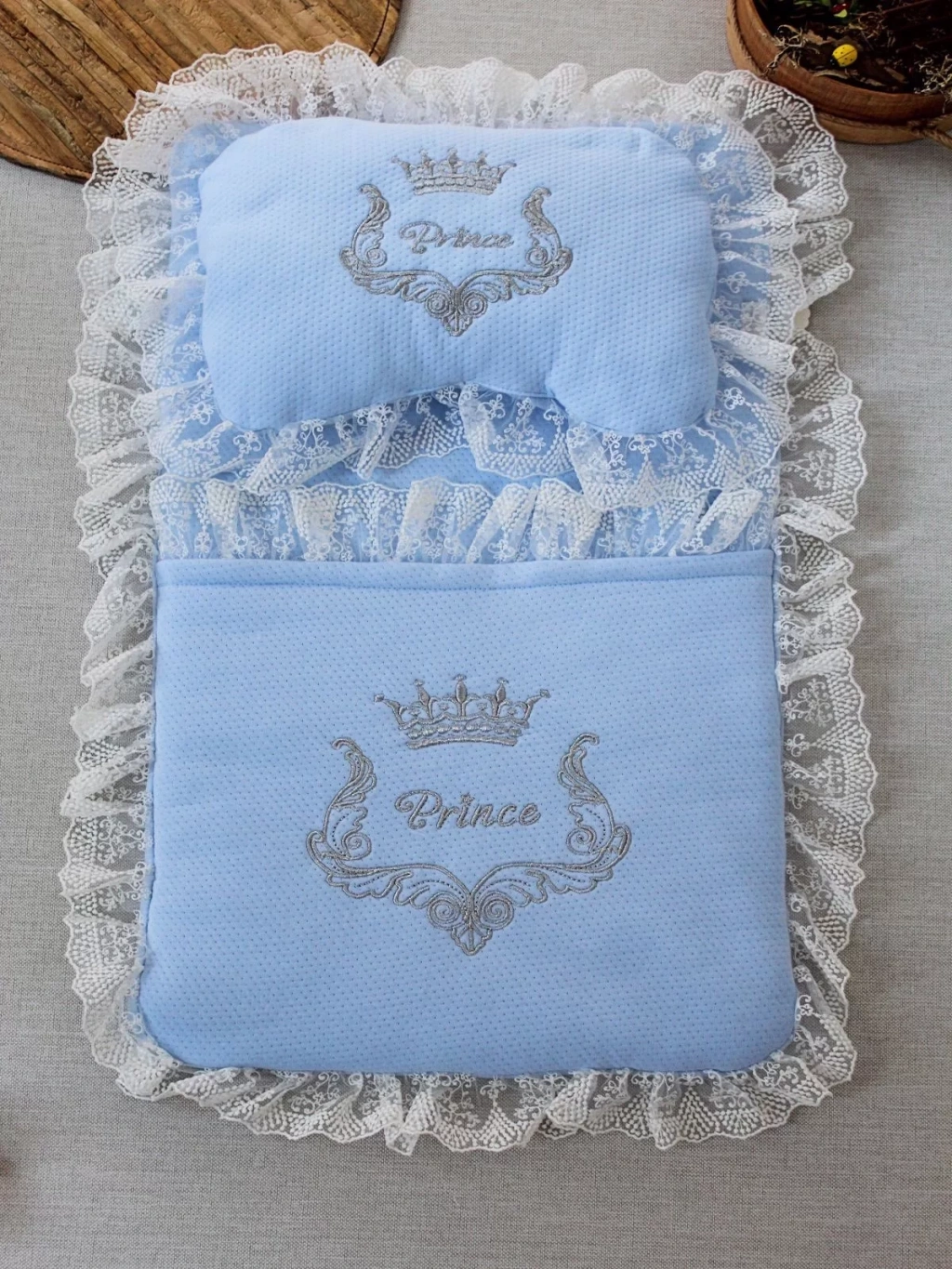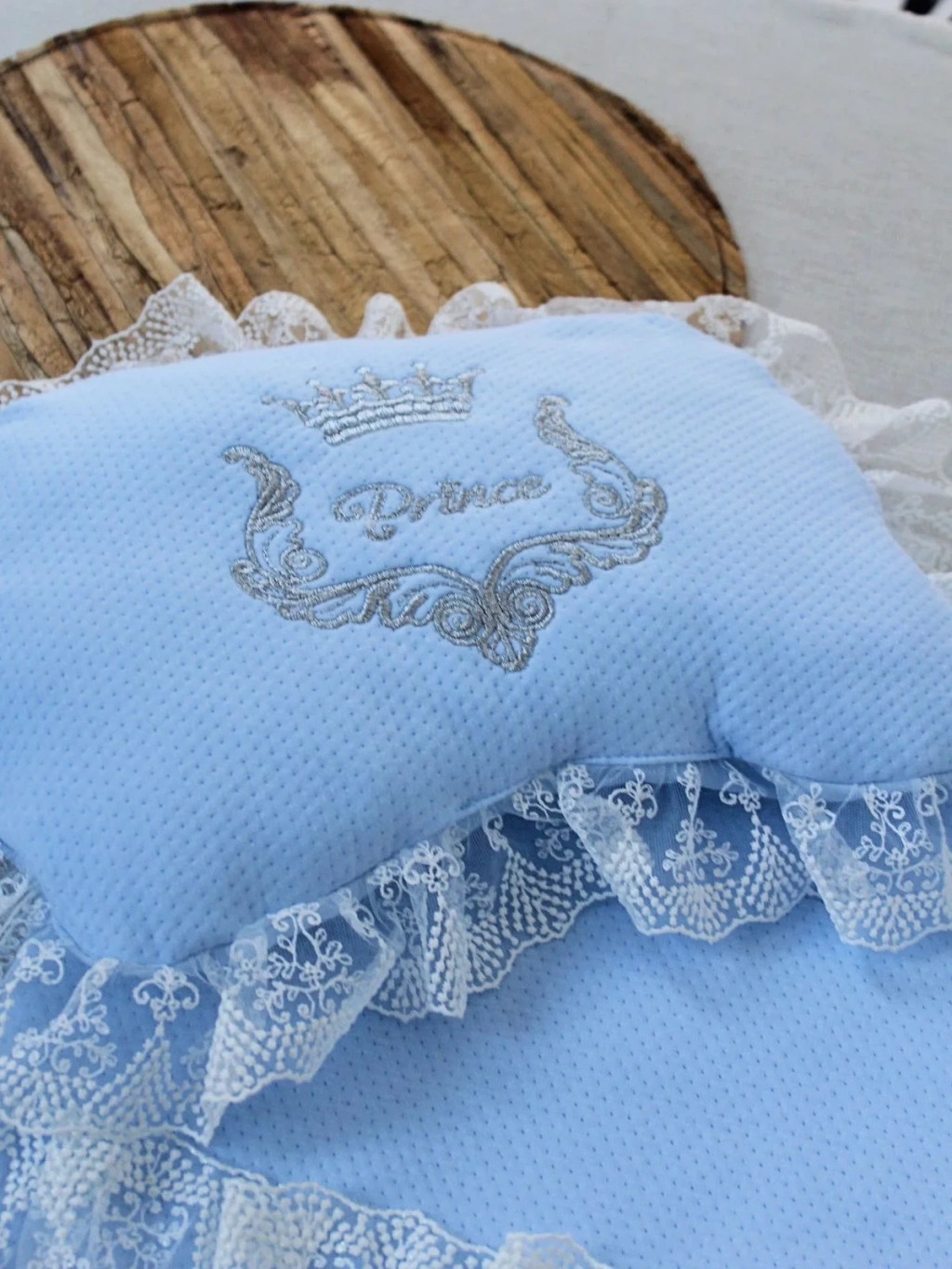 Yenidoğan Sahra Taç Nakışlı Trilüks 2li Alt Açma Seti Mavi