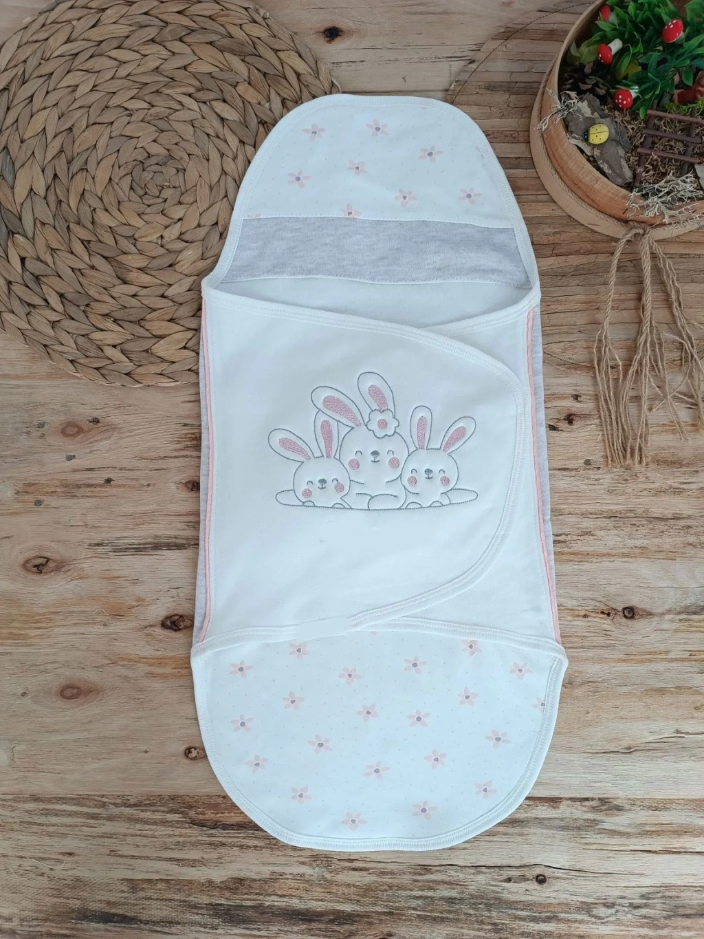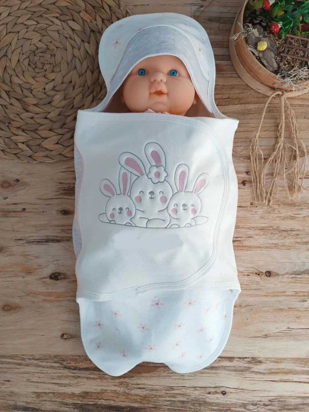 Yenidoğan Tavşan Tayfalar Nakışlı Çıt Çıt Kapamalı Bebek Kundak Ekru