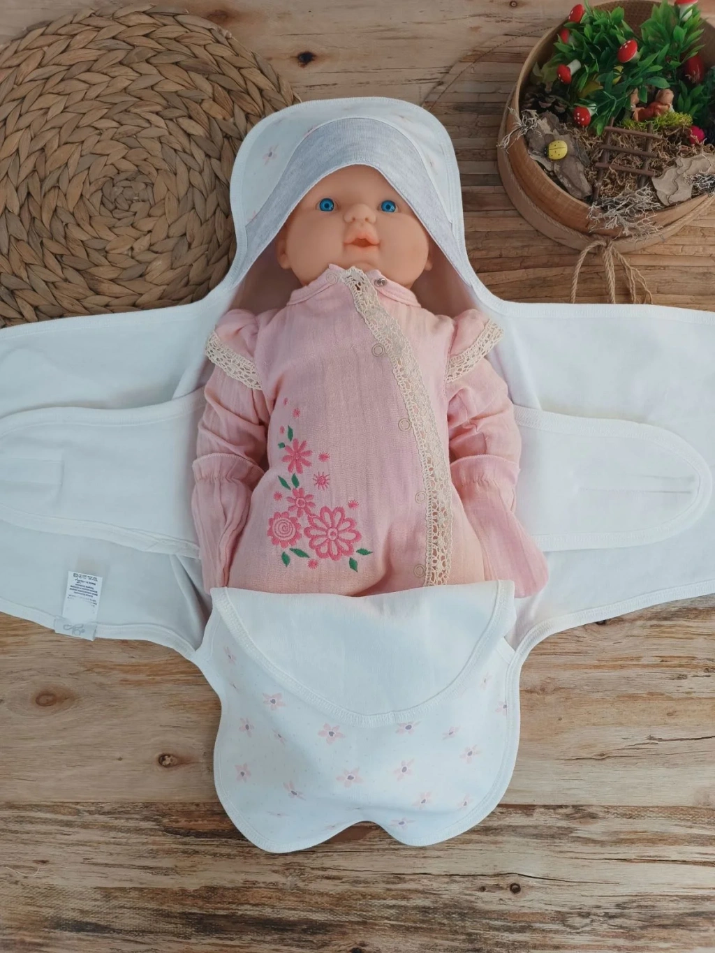 Ergonomik yapısı ile bebeğiniz anne kucağında gibi hissedecektir. Bebeklerimizin sağlığı için kullandığımız kumaş %100 pamuktur. Soğuk ve sert kış aylarında bebeğinizi korur. Antibakteriyel özelliklidir. Bulut kadar hafif ve yumuşak kumaşı bebeğinizi sıcak tutar ve terletmez. Doğumdan sonra bebeğinizin rahatça uyumasını ve doğru emzirme pozisyonunda rahatça tutarak emzirebilmenizi sağlar. Yumuşacık dokusuyla bebeklerinize asla rahatsızlık vermez. Ürünlerimizde polyester iplik kesinlikle kullanılmaz. Kullanılan ipler pamuklu veya viskon karışımlı iplerdir. İleri nakış teknolojisi ile tasarlanmıştır. Ürünlerimizde, bebeğin tenine temas eden yüzeylerde, nakış arkası vb. riskli yüzeylerde ve bebeğin tenini tahriş etme olasılığı olan tüm detaylarda mutlaka tela vb. yapıştırılarak, bebeğin zarar görmesini engelleyecek gerekli önlemler alınmıştır.