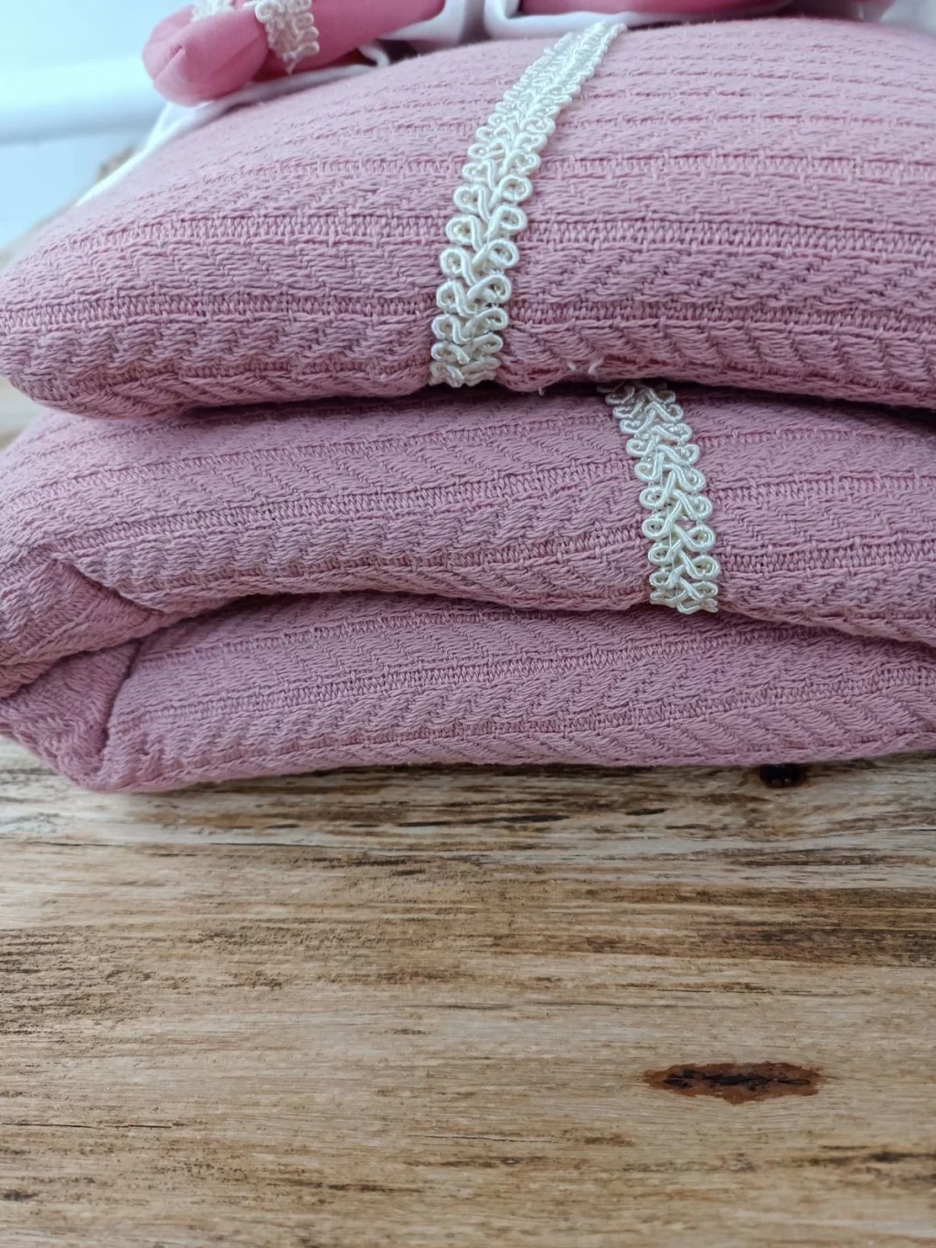 Yenidoğan Tericotton Örgülü Trilüx Bebek Battaniyesi Kundak Gül Kurusu