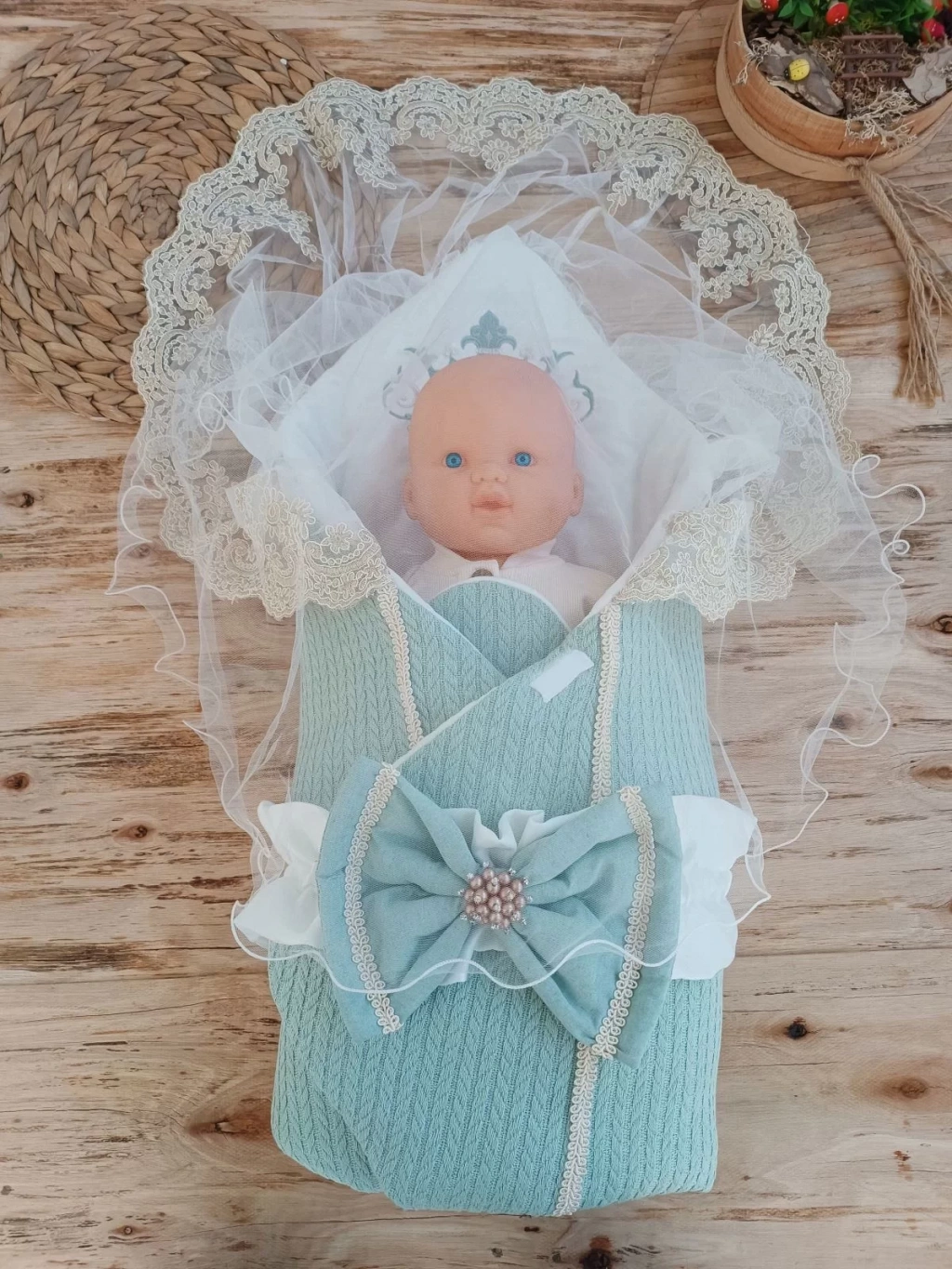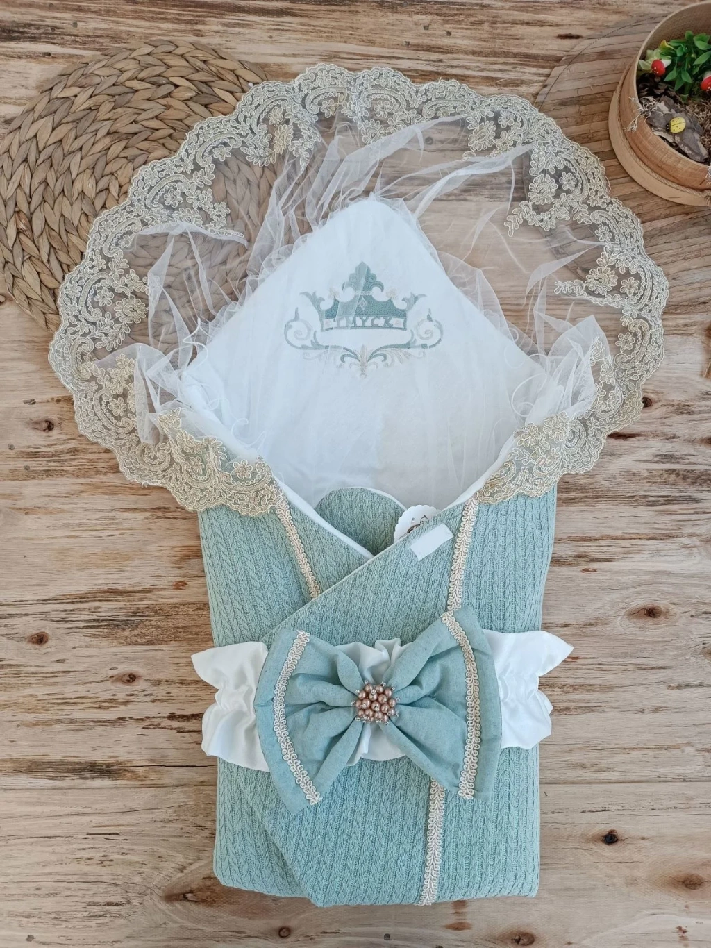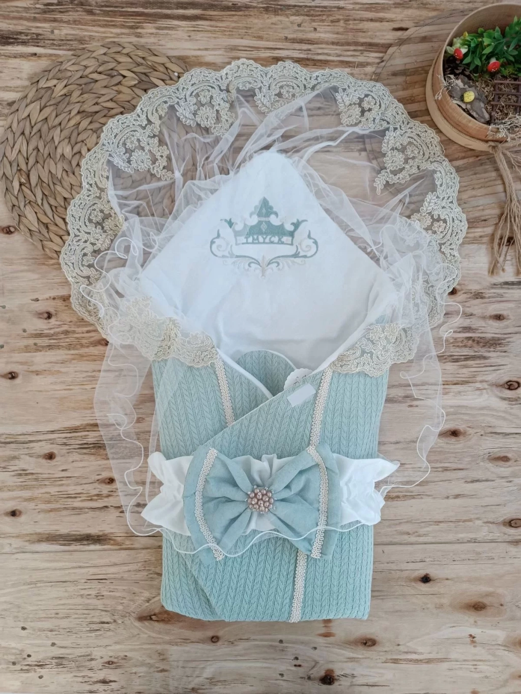 Yenidoğan Tericotton Örgülü Trilüx Bebek Battaniyesi Kundak Yeşil