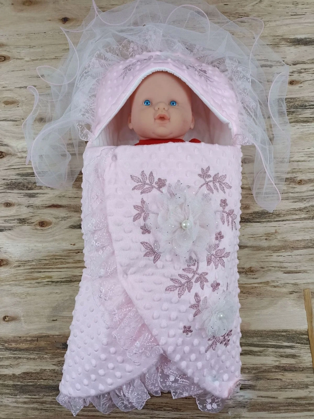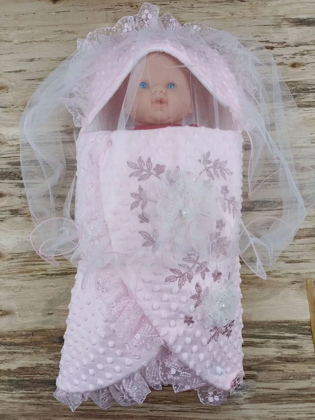 Yenidoğan Topçikli Gül Bahçesi Tül Örtülü Kız Erkek Bebek Klasik Kundak Bebek Battaniyesi Pembe
